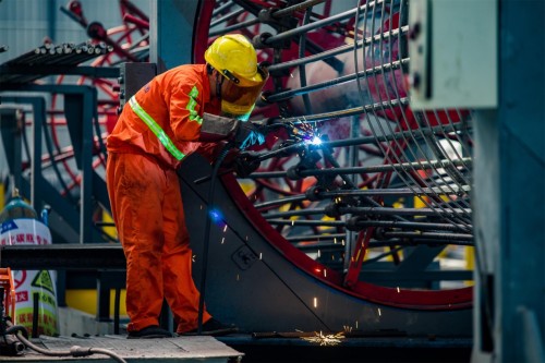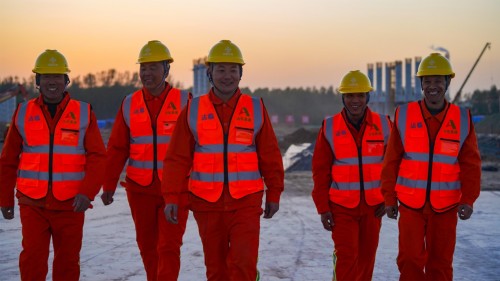在黃河特大橋上施工的產(chǎn)業(yè)工人
