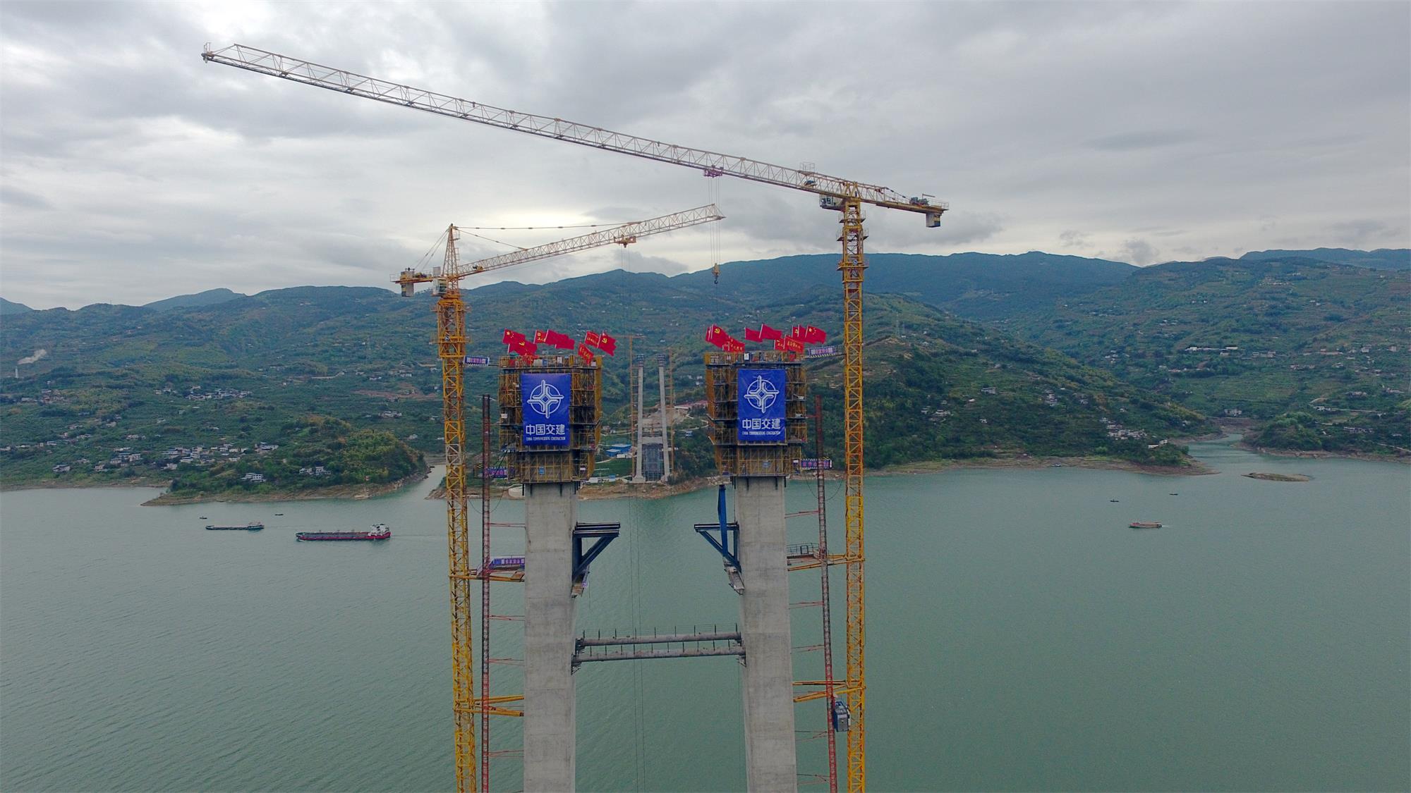 重慶萬州新田長(zhǎng)江大橋是萬州環(huán)線高速公路的控制性工程,主跨長(zhǎng)達(dá)1020米,是三峽庫(kù)區(qū)在建跨徑最大的橋梁。大橋主塔采用門式框架結(jié)構(gòu),結(jié)合既有山勢(shì)地形條件,采取不等高式高低塔,主塔左幅索塔高177.5米,右幅索塔高161.5米。施工組織充分考慮長(zhǎng)江經(jīng)濟(jì)帶環(huán)保要求高、臨江陡崖地帶地形條件復(fù)雜、特種設(shè)備高空作業(yè)安全風(fēng)險(xiǎn)大等特點(diǎn),通過BIM+技術(shù)集成深度應(yīng)用,成功對(duì)大橋結(jié)構(gòu)線型和索塔樁基等進(jìn)行優(yōu)化,開創(chuàng)性使用全封閉式智能液壓爬模和高空無落地式支架體系。通過脫模劑比對(duì)試驗(yàn)和配合比優(yōu)化管理,實(shí)現(xiàn)主塔混凝土拆模后達(dá)到“鏡面”效果,為類似主塔施工提供可靠大數(shù)據(jù)和可借鑒的寶貴經(jīng)驗(yàn)支持。